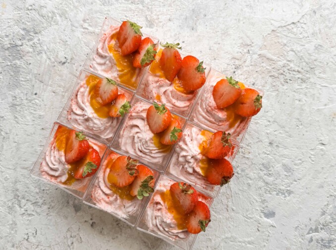 Krem truskawkowy z bezą i sosem marakuja
