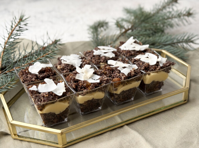 Mini torcik makowy z masa mascarpone i płatkami kokosu