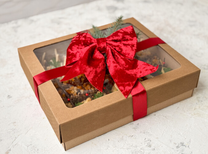 🌲 Dodatki i składniki boxów świątecznych mogą się różnić, w zależności od dostępności produktów. Kokarda jest elementem dekoracyjnym, nie jest dołączona do boxa.